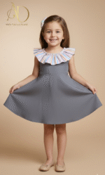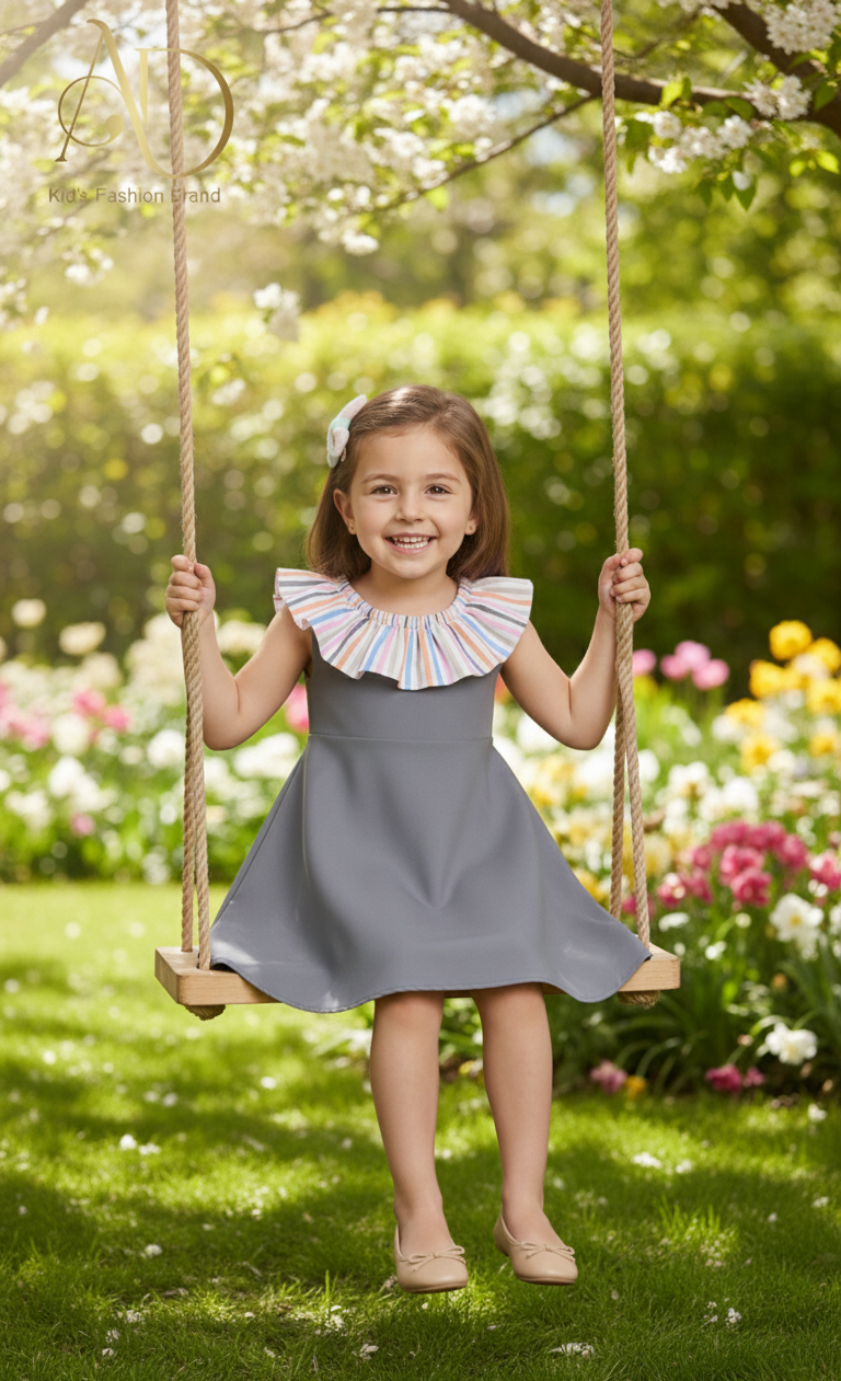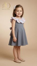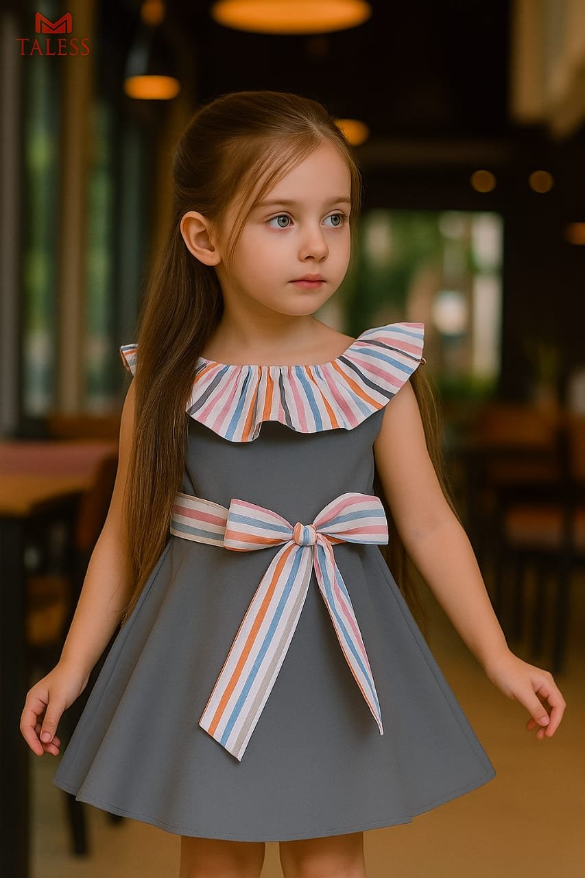فستان طفولي راقي بتصميم أنثوي جذاب يجمع بين الأناقة والبساطة في آن واحد.