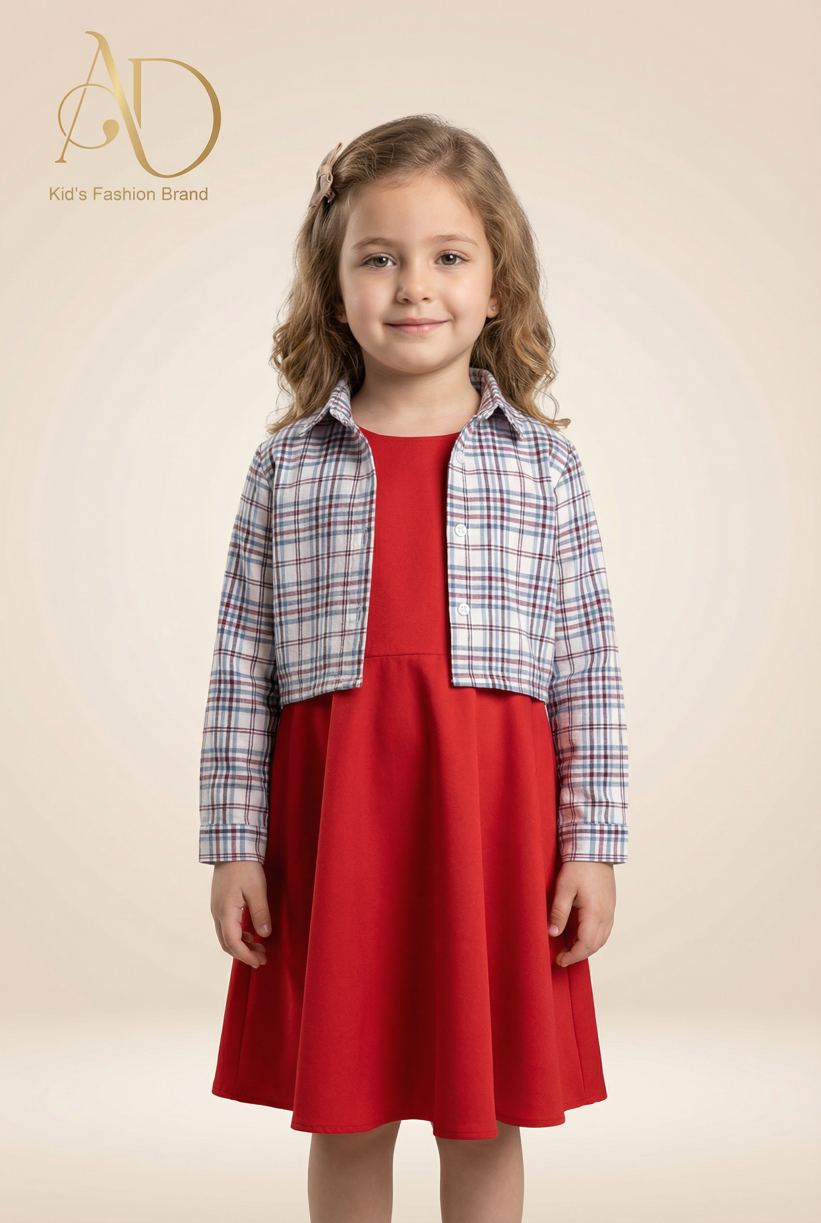 فستان + جاكيت كاروه شيك للأطفال ✨